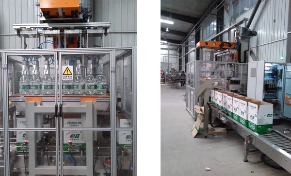 全伺服系統(tǒng),抓瓶及落瓶進(jìn)箱時(shí),行程及定位精準(zhǔn),適用于大瓶及易碎玻璃瓶的自動(dòng)裝箱。